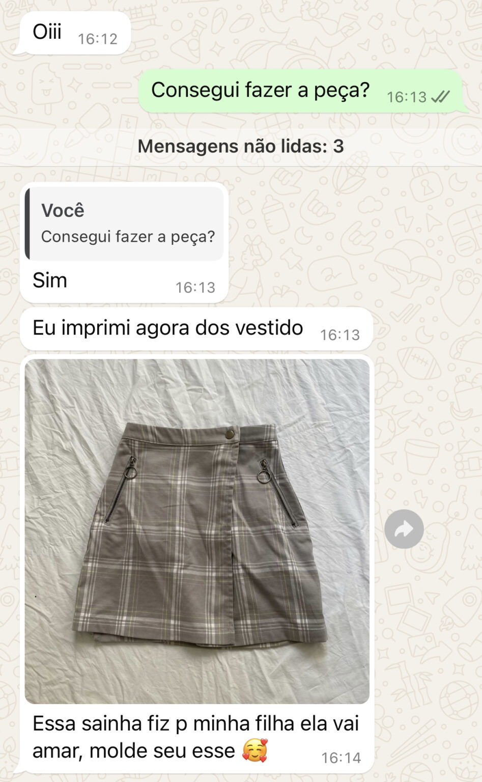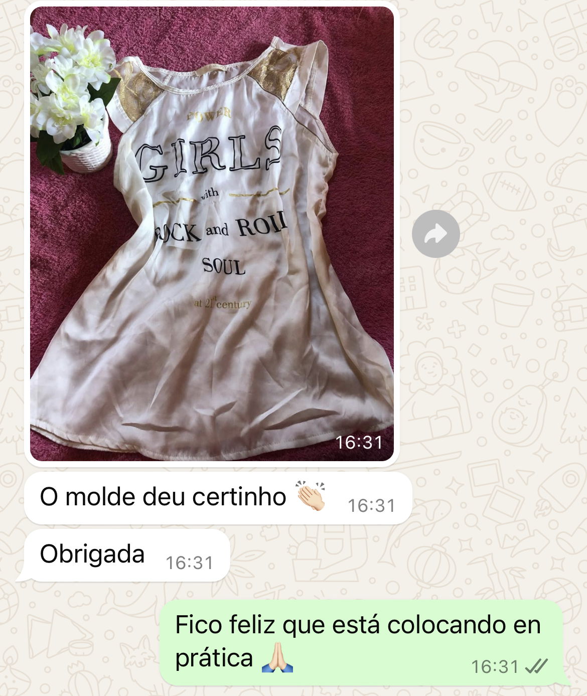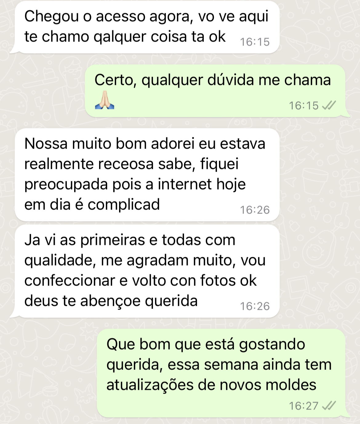 Receba os moldes imediatamente no seu WhatsApp e Email
